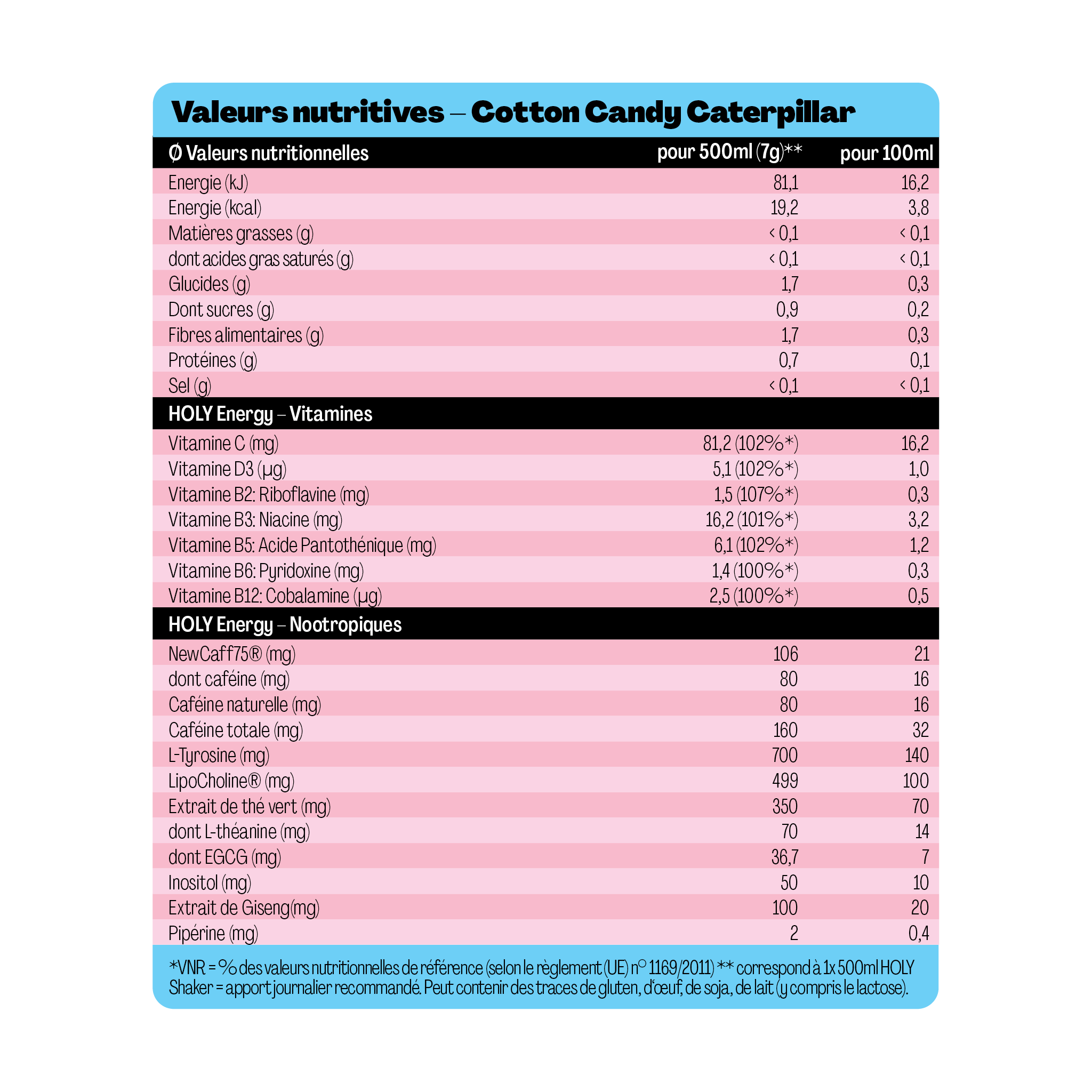 Cela dépend du produit. Tu peux par exemple boire notre HOLY Iced Tea® sans modération. En revanche, pour notre boisson énergisante HOLY Energy®, nous recommandons une seule portion par jour (500 ml) en raison de la caféine. Les femmes enceintes et les enfants devraient généralement renoncer à notre boisson énergisante (et à toutes les autres boissons contenant de la caféine).