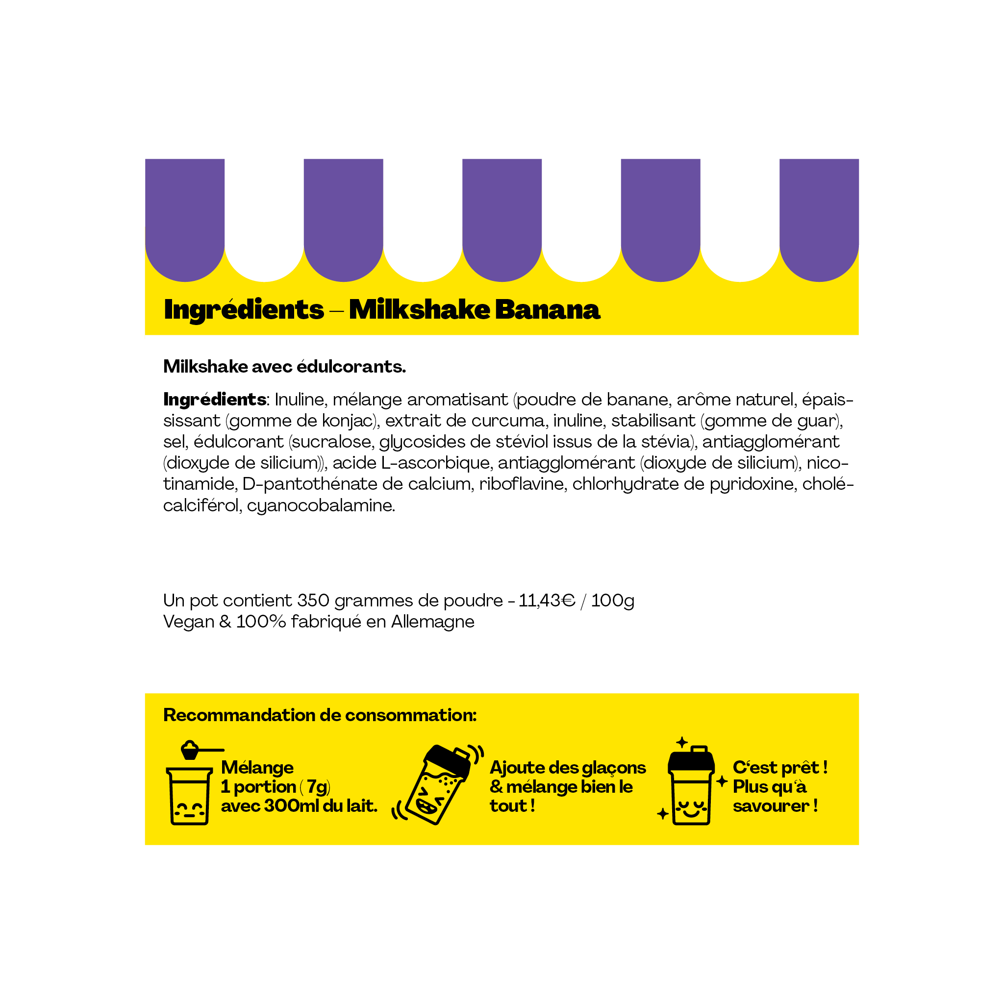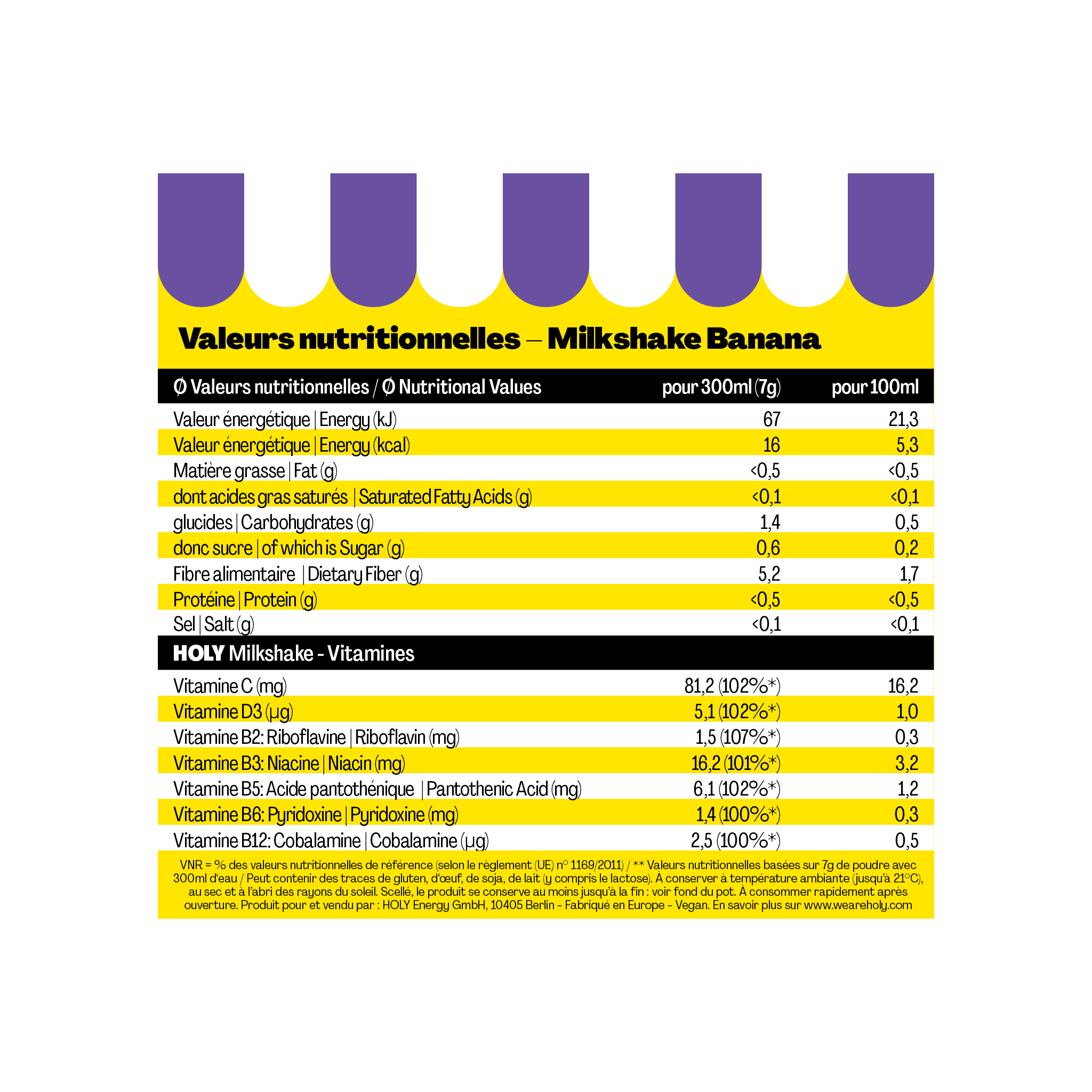 Tu veux avoir la banane ? Offre-toi le nouveau HOLY Milkshake Banana - le premier milkshake au goût onctueux et en toute bonne conscience ! Pas de sucre, peu de calories, mais plein de vitamines. Il suffit de le mélanger avec du lait & de le savourer !
