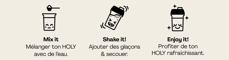Cela dépend du produit. Tu peux par exemple boire notre HOLY Iced Tea® sans modération. En revanche, pour notre boisson énergisante HOLY Energy®, nous recommandons une seule portion par jour (500 ml) en raison de la caféine. Les femmes enceintes et les enfants devraient généralement renoncer à notre boisson énergisante (et à toutes les autres boissons contenant de la caféine).